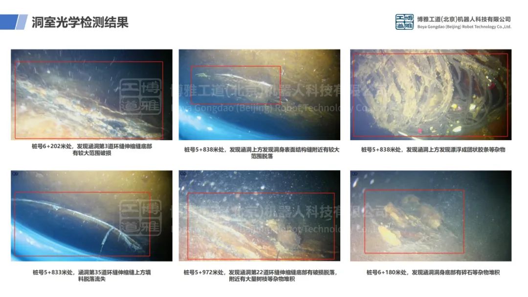 2023 年,博雅工道參與了團(tuán)成湖至第九水廠輸水工程管道檢測(cè)的工作。此次檢測(cè)利用水下機(jī)器人,對(duì)團(tuán)九一期隧洞 9# 排氣閥井上下游約 400 米范圍管段進(jìn)行全覆蓋掃描,主要檢測(cè)隧洞的伸縮縫,對(duì)重點(diǎn)關(guān)注部位和異常部位進(jìn)行進(jìn)一步抵進(jìn)直觀檢查和激光尺掃描。