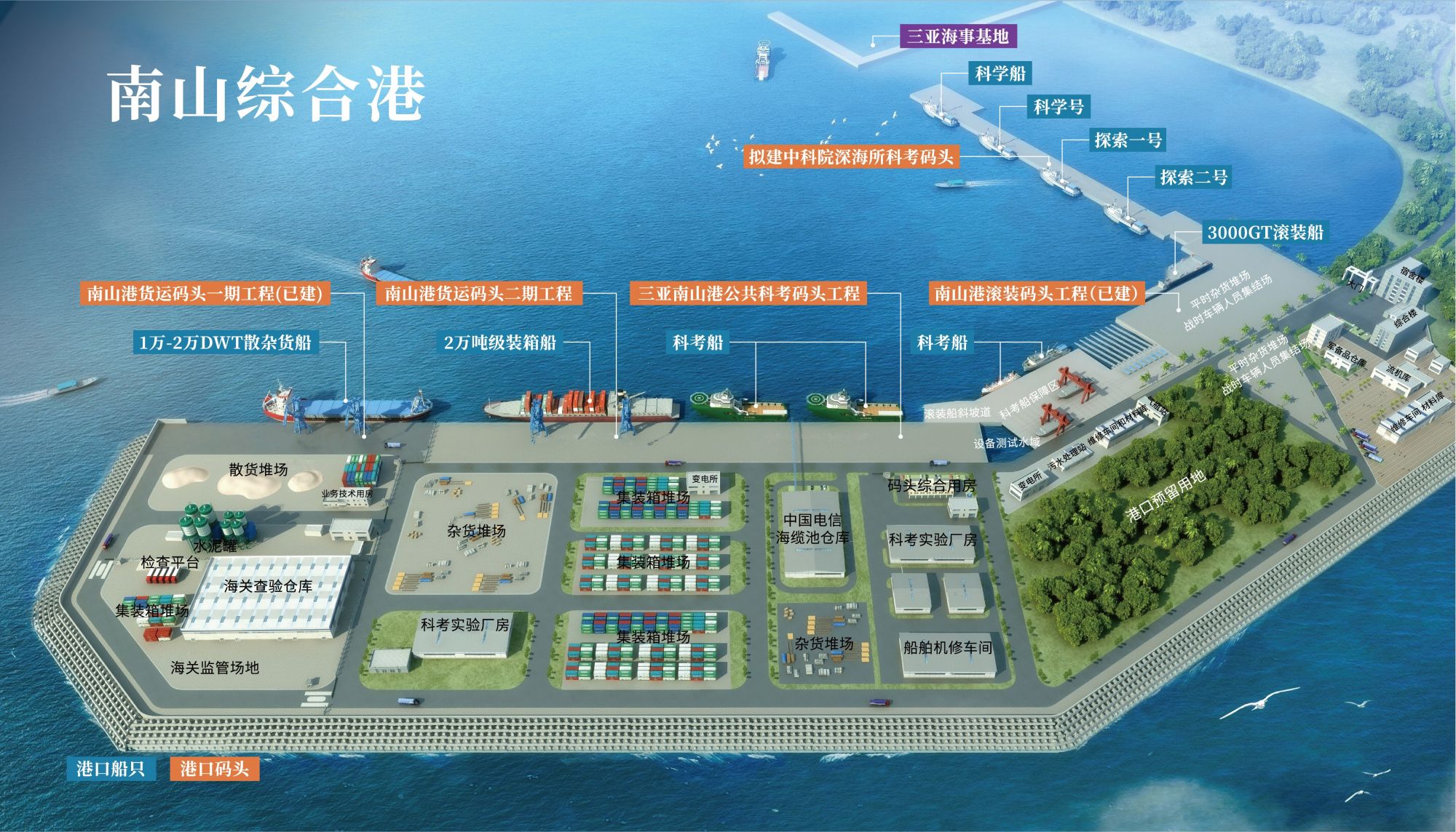 南山港于2005年開始建設(shè),陸域面積約28萬平米,可用岸線1000延米,擁有多個(gè)萬噸級(jí)泊位,是“科考為主,兼顧貨運(yùn)”的綜合性港口。目前有超50家科考單位的科考船舶長(zhǎng)期??磕仙礁?。
