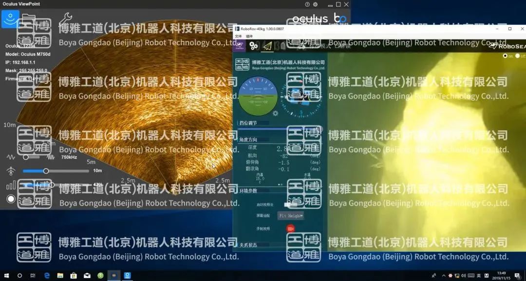 水下救援機(jī)器人 R1-45 搭載的攝像頭和聲吶采集到的現(xiàn)場圖像