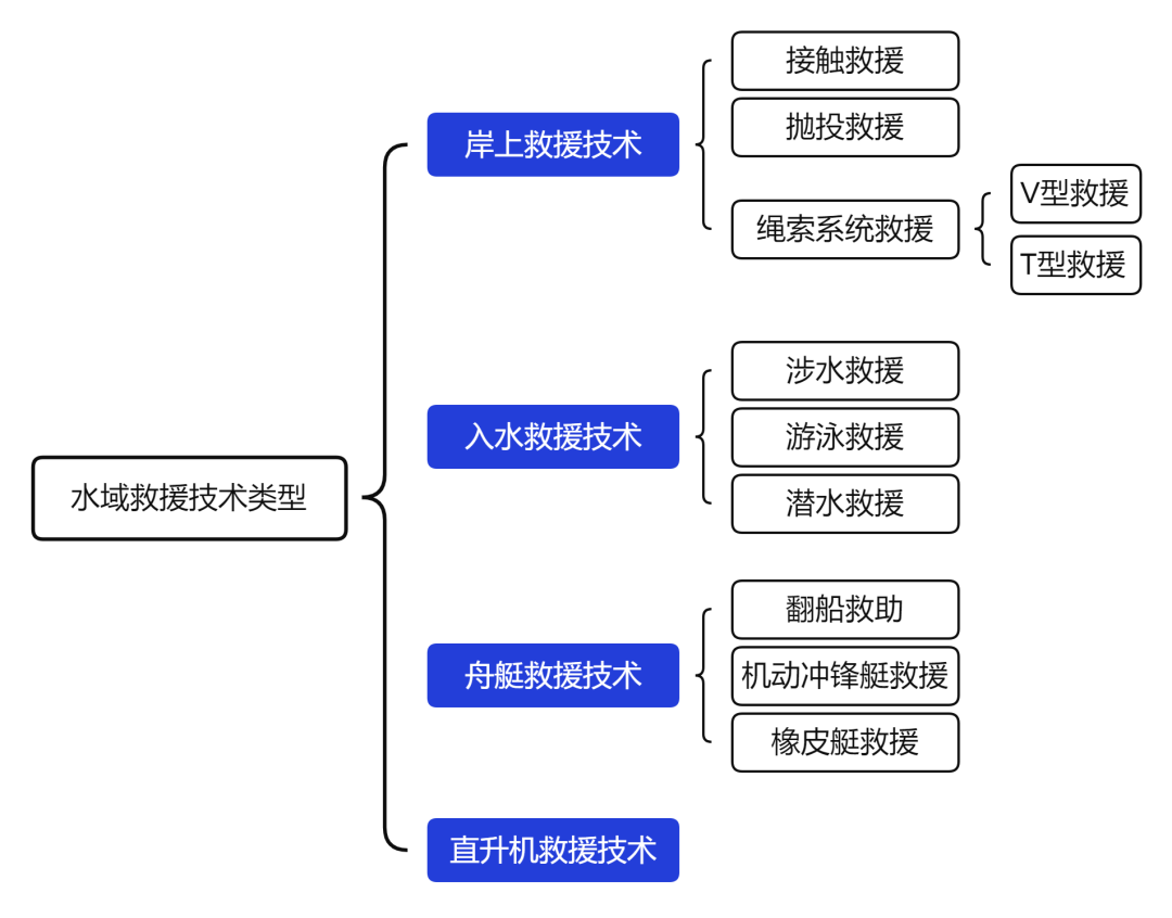 《水域救援作業(yè)指南》作為我國首部指導(dǎo)水域事故處置的行業(yè)標(biāo)準(zhǔn),給救援隊(duì)伍的建設(shè)提供了有力的參考,對現(xiàn)場管理、人員裝備和行動(dòng)方案都提出了要求?!吨改稀分羞€明確了水域救援適用的 5 項(xiàng)災(zāi)害事故類別,包括:內(nèi)河湖泊船舶擱淺翻沉事故;車輛、列車、飛行器等交通工具墜水事故;洪澇災(zāi)害;落水遇險(xiǎn)事件以及孤島遇險(xiǎn)事件。相應(yīng)的,針對不同災(zāi)害事故類型,通過分析借鑒了國外專業(yè)救援認(rèn)證機(jī)構(gòu)的經(jīng)驗(yàn),列出了 10 類水域救援技術(shù)類型。