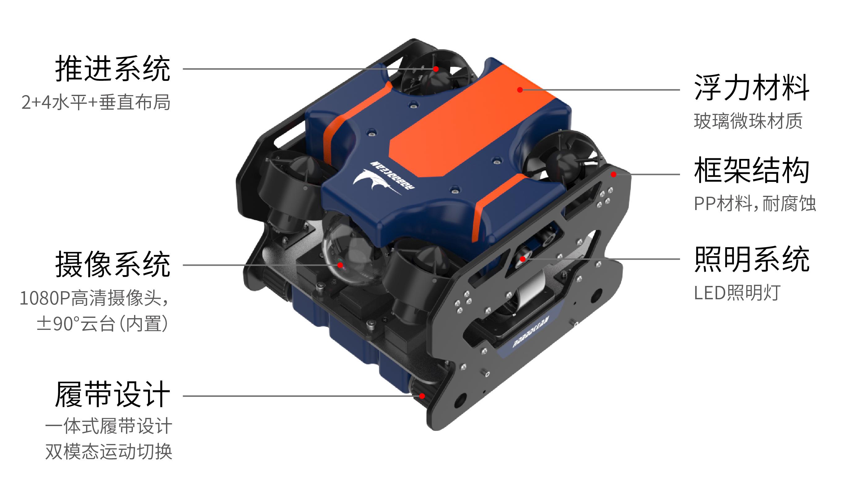 A-30是一款小型履帶式檢測(cè)機(jī)器人,整機(jī)采用一體化設(shè)計(jì),在小型觀測(cè)級(jí)機(jī)器人水中進(jìn)退、升沉、轉(zhuǎn)艏、俯仰、橫滾等自由度靈活運(yùn)動(dòng)能力的基礎(chǔ)上,增添水中側(cè)翻、側(cè)壁爬行等履帶爬行能力。機(jī)器人兼容直線追蹤系統(tǒng),非常適用于水池焊縫檢測(cè)等狹小空間貼壁檢測(cè)作業(yè)。