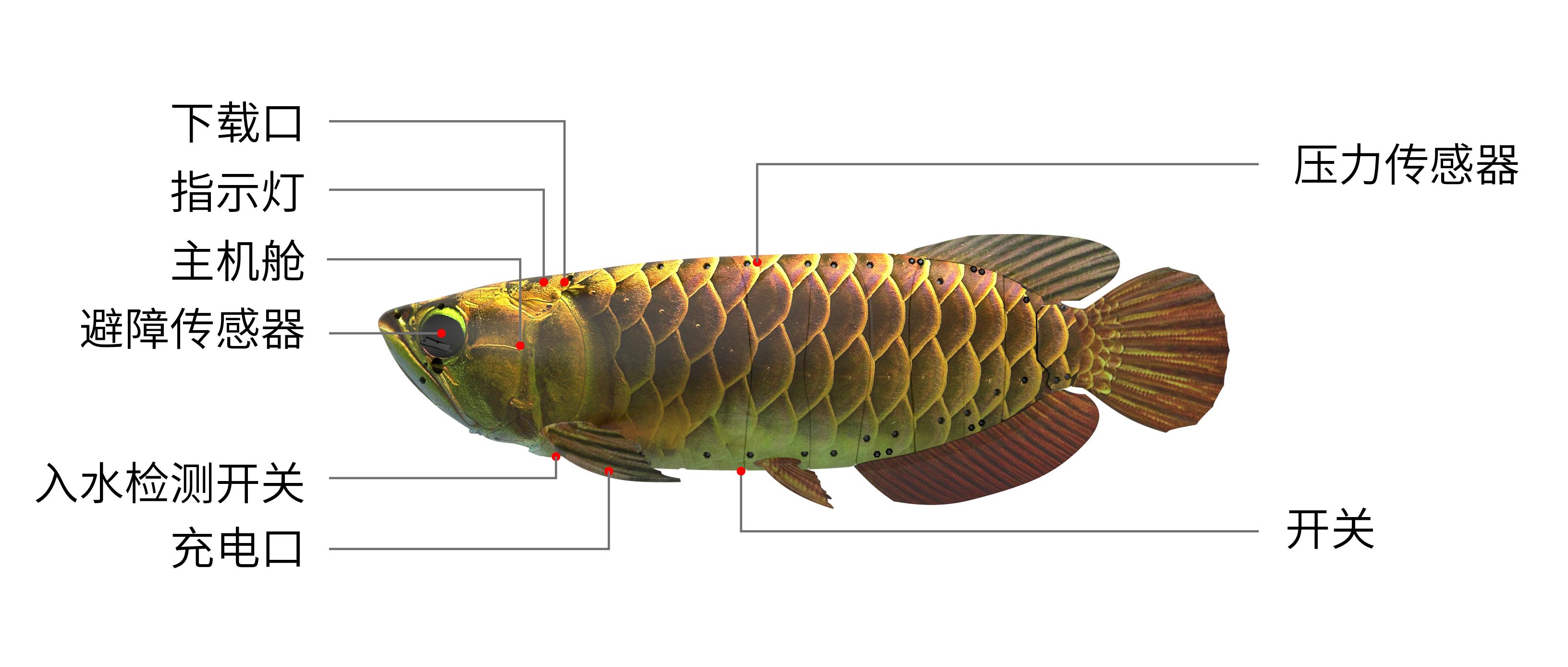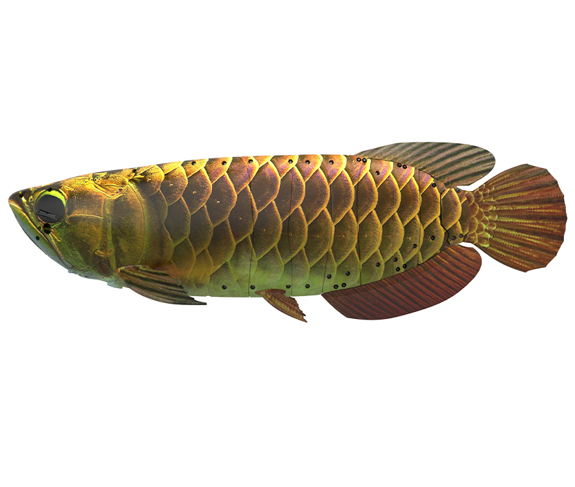 BG-5是一款多關節(jié)機器人產(chǎn)品,該產(chǎn)品根據(jù)龍魚游動姿態(tài)和外觀設計樣式,依托現(xiàn)有流體仿真技術設計。能夠像真魚一樣順暢優(yōu)雅的自如游動,達到以假亂真的效果。